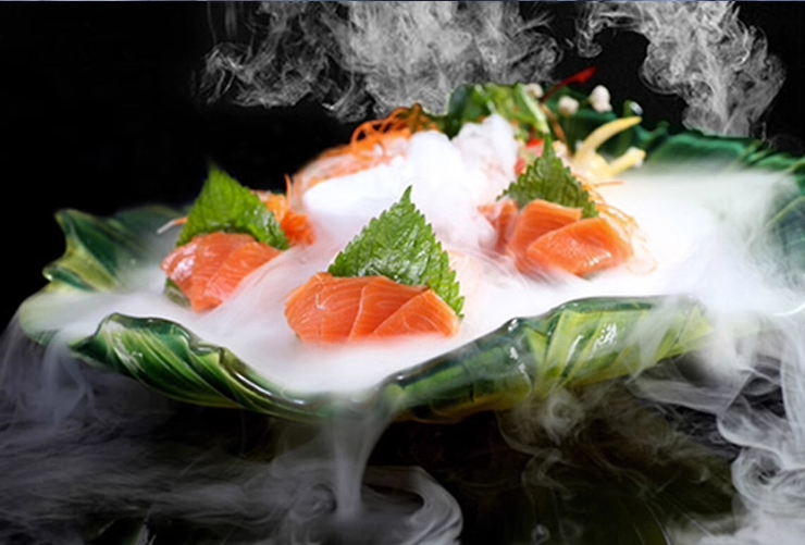 块状干冰用于食品行业冰镇美化:块状干冰可以在葡萄酒、鸡尾酒或饮料中加入干冰。饮用时凉爽可口。杯子里有烟,非常宜人。制作冰淇淋时也可以加入干冰。冰淇淋不容易融化。此外干冰还特别适合冷藏和运输外卖冰淇淋。块状干冰可以在酒店和餐厅制作海鲜特色菜肴。上菜时加入干冰,可以产生白色烟雾景观,提高宴会档次,如龙虾生鱼片。在龙虾、螃蟹、鱼翅和其他海鲜中冷冻。干冰不会融化水。它比水冰冷藏更干净。广泛应用于欧洲、美国、日本和其他国家。